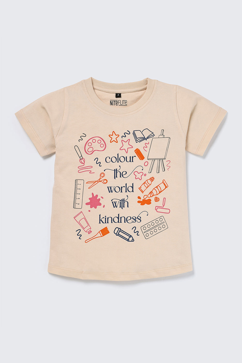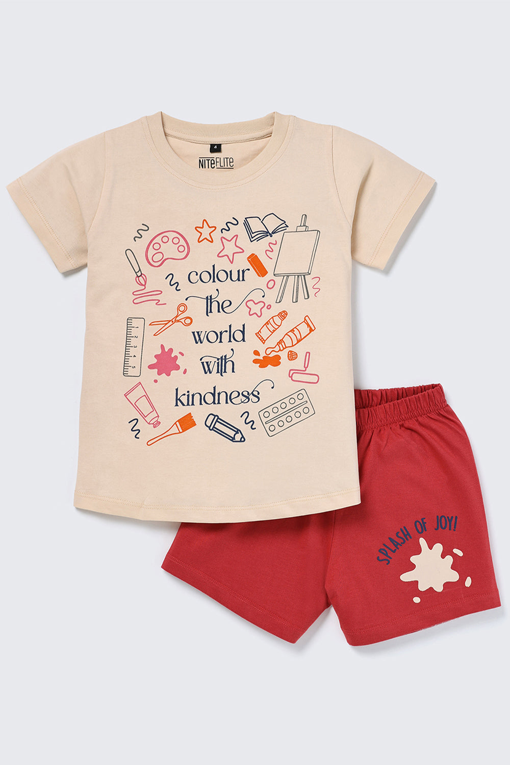 Crafted in 100% cotton, bedtime is made easy and fun for your little one in our easy fit shorts set. Featuring a cool colour the world kids' shorts set print, this one is perfect for those hot summer days!