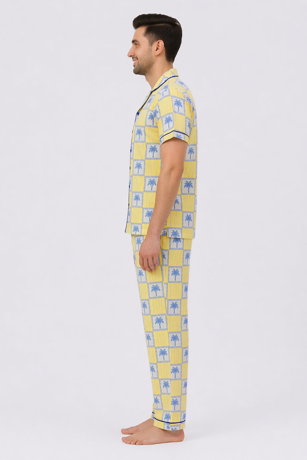 Our bestselling notched collar pyjama set in palm paradise is effortlessly sophisticated and a wardrobe essential.