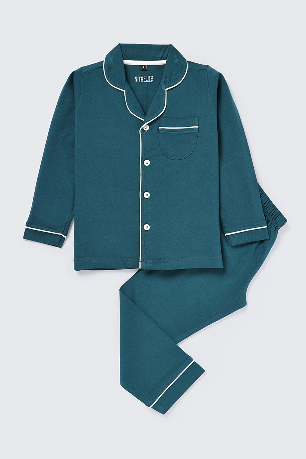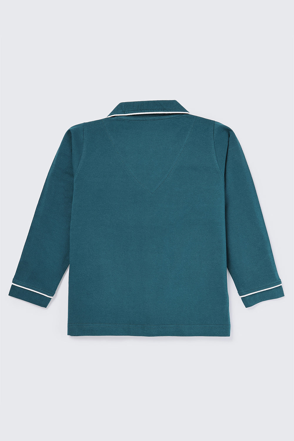 Crafted in 100% cotton, bedtime is made easy and fun for your little one in our notched collar pyjama set. Featuring a Tropical Teal combination, this one is an evergreen classic!